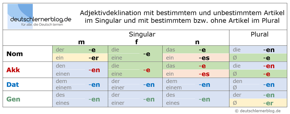 declinaciones de adjetivos en alemánDeclinaciones del adjetivo en alemán en imágenes |